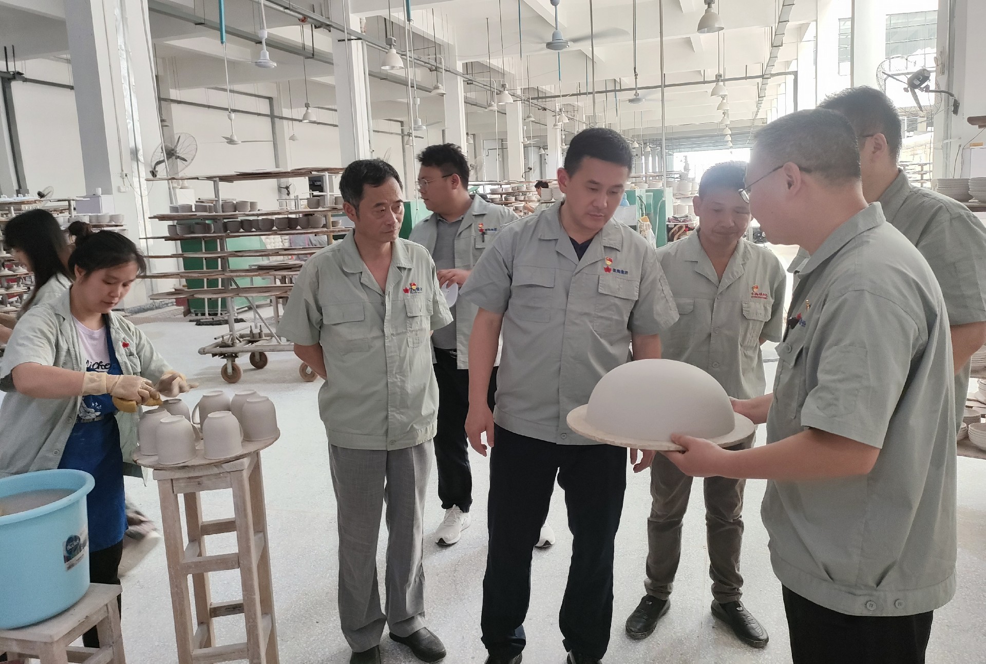 6月1日下午,景陶集團(tuán)黨委書(shū)記、董事長(zhǎng)鄧景揚(yáng)到紅葉公司一廠調(diào)研,集團(tuán)副總經(jīng)理陳淵、紅葉公司總經(jīng)理兼一廠廠長(zhǎng)章彧陪同。