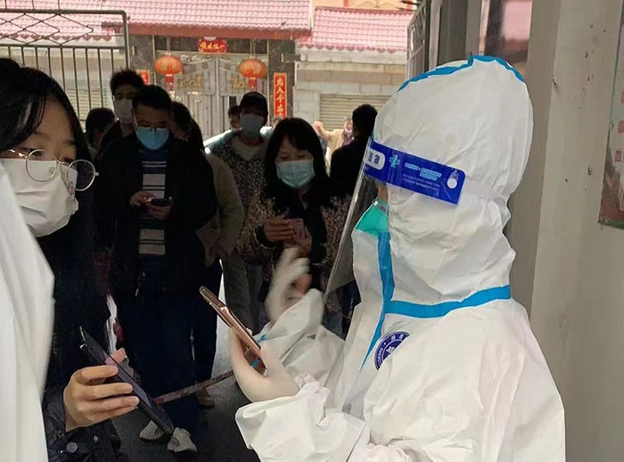 社區(qū)“雙報到”,抗疫顯擔(dān)當(dāng)。疫情來襲,黨員穿上“大白”防護(hù)服、做好秩序維護(hù)、發(fā)放健康檢測表、信息錄入、政策宣傳、掃碼查驗、上門進(jìn)行采集核酸……。在各管控小區(qū),黨員志愿者們的身影,一直在為小區(qū)居民們辛苦地付出著。“我們都是小區(qū)業(yè)主,又都黨員志愿者,在這種特殊時刻更要挺身而出,體現(xiàn)作為黨員的本分,在危難時刻顯擔(dān)當(dāng)。根據(jù)防疫工作安排,每天的工作時長都不固定,但我們每天都從半夜工作到凌晨。我們社區(qū)大家的配合度都很高,整個小區(qū)情況比較平穩(wěn),我們覺得能夠在疫情防控工作貢獻(xiàn)一些力量感到很開心?!蔽S狼逭f道。